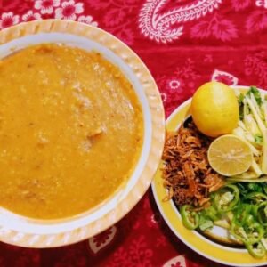 Immerse yourself in the rich and creamy texture of this traditional dish, featuring slow-cooked chicken and lentils, infused with aromatic spices for a truly satisfying meal.