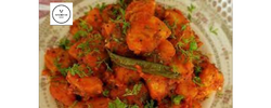 Experience the vibrant hues and bold flavors of this spicy potato dish, cooked with tomatoes, onions, and a blend of aromatic spices, for a fiery culinary adventure.