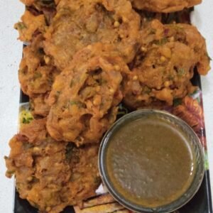 Delight in the crispy goodness of these deep-fried fritters, featuring a variety of vegetables or meats coated in a chickpea flour batter, perfect for snacking or as a side dish.