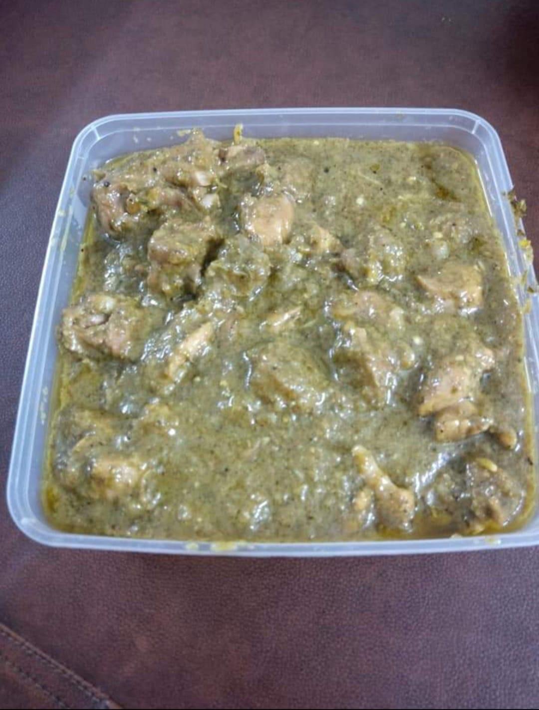 Treat yourself to the vibrant green hues and fresh flavors of this chicken dish, marinated in a blend of green herbs and spices, offering a refreshing twist on traditional poultry dishes.